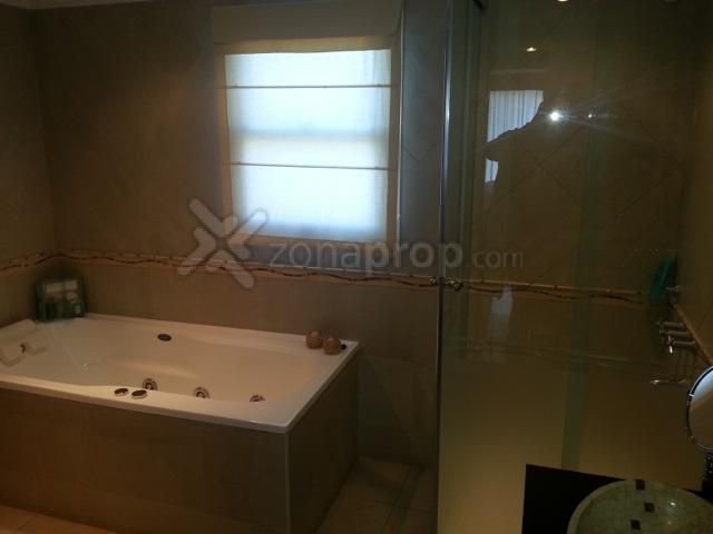 PA: DOS DORMITORIOS, BAÑO COMPLETO CON BAÑERA, SUITE PRINCIPAL CON VESTIDOR Y BAÑO CON BAÑERA E HIDROMASAJE, CABINA DE DUCHA, BALCÓN TERRAZA CON VISTA AL JARDÍN Y PISCINA.